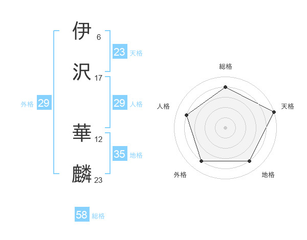 伊沢 華麟さんの天格は23画の5点!