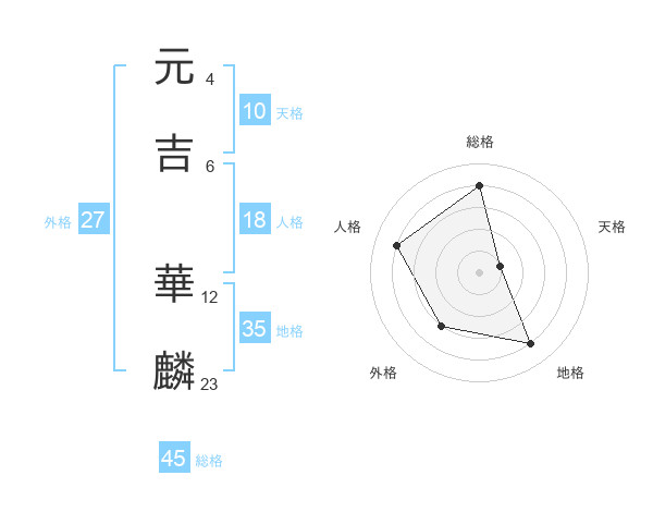 元吉 華麟さんの総格は45画の4点!