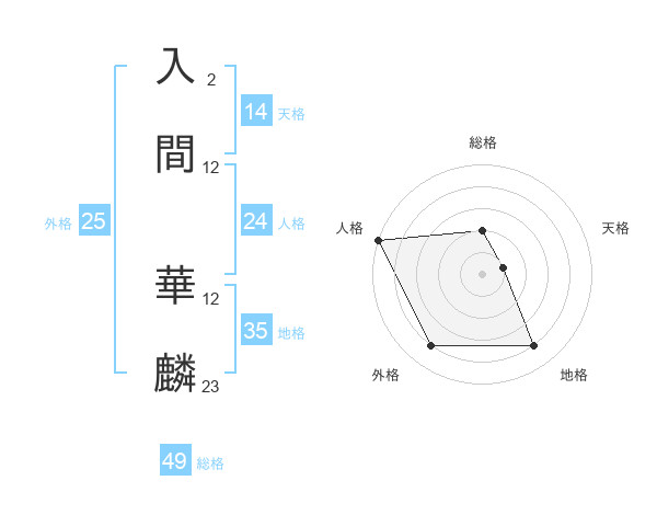 入間 華麟さんの外格は25画の4点!