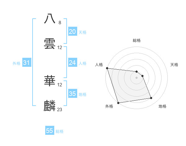 八雲 華麟さんを姓名の画数から五運を鑑定