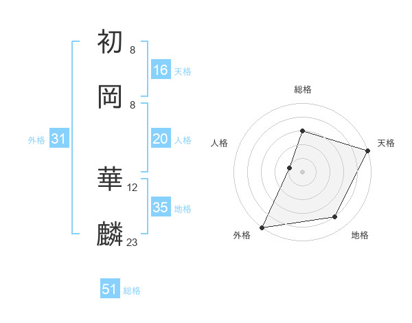 初岡 華麟さんの総格は51画の3点!