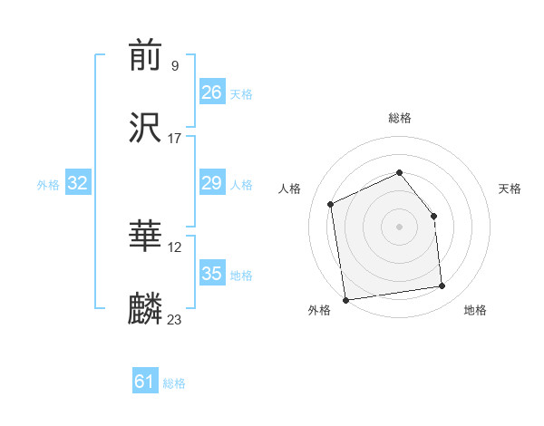 前沢 華麟さんを姓名の画数から五運を鑑定