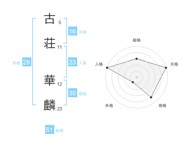 古荘 華麟さんを姓名の画数から五運を鑑定