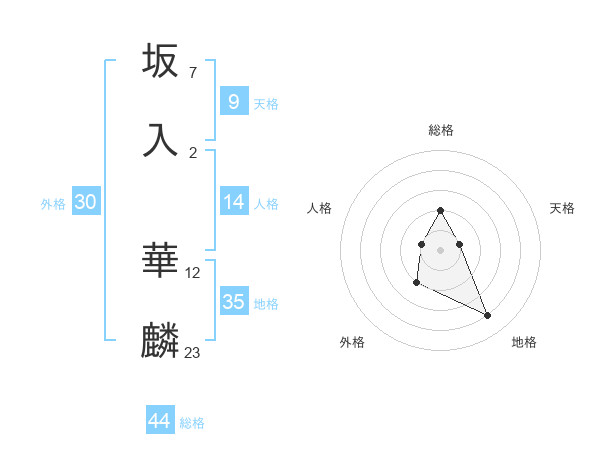 坂入 華麟さんの地格は35画の4点!