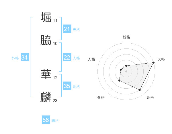堀脇 華麟さんの天格は21画の5点!