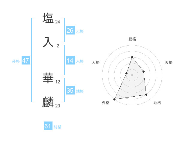 塩入 華麟さんの外格は47画の5点!