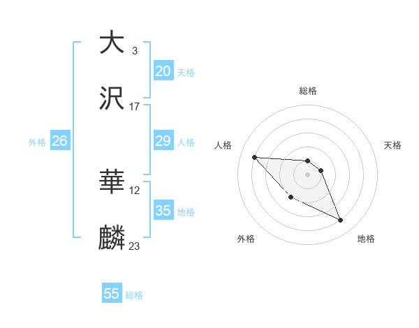 大沢 華麟さんの天格は20画の1点!