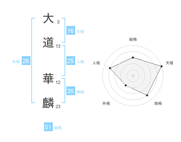 大道 華麟さんの総格は51画の3点!