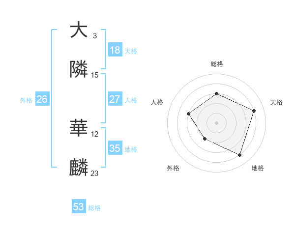大隣 華麟さんの総格は53画の3点!