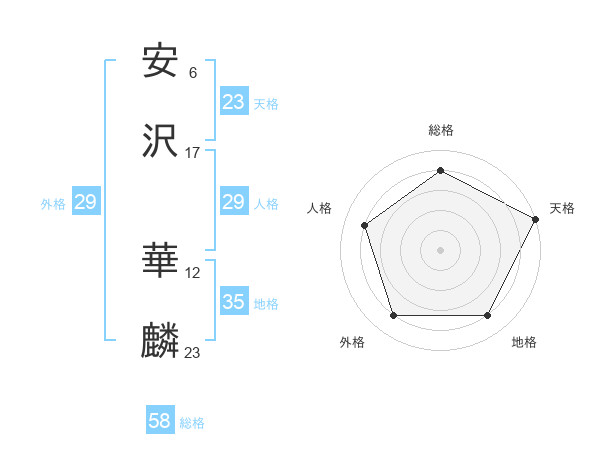 安沢 華麟さんの総格は58画の4点!