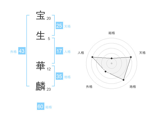 宝生 華麟さんの天格は25画の4点!