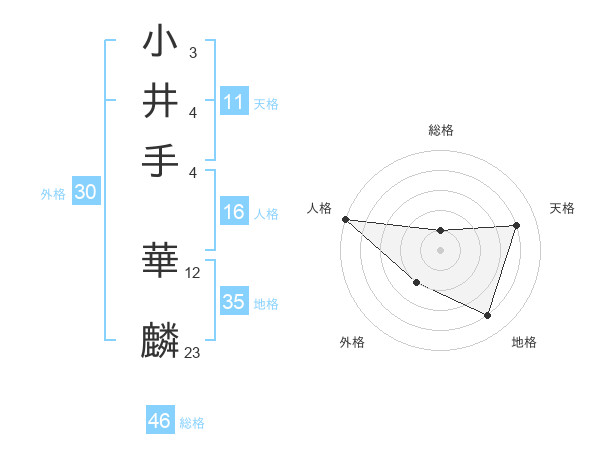 小井手 華麟さんの地格は35画の4点!