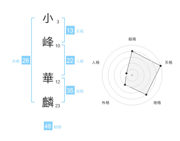小峰 華麟さんの総格は48画の4点!