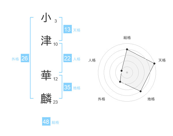 小津 華麟さんの総格は48画の4点!