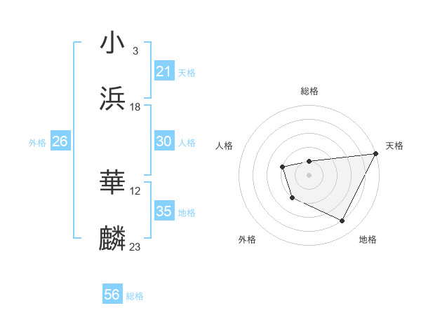 小浜 華麟さんの総格は56画の1点!