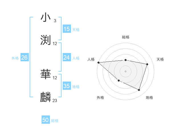 小渕 華麟さんの総格は50画の2点!