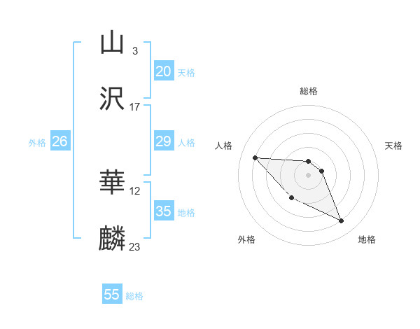 山沢 華麟さんを姓名の画数から五運を鑑定