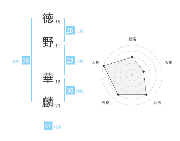 徳野 華麟さんを姓名の画数から五運を鑑定