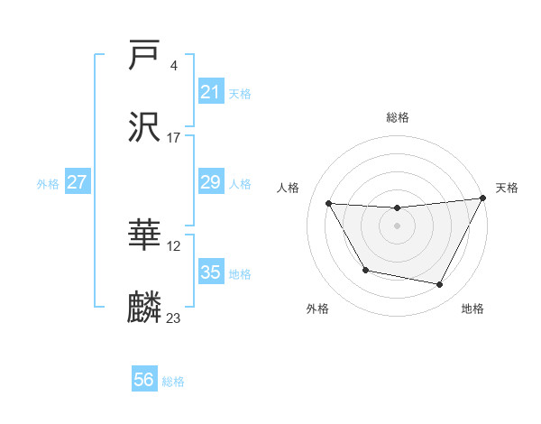 戸沢 華麟さんを姓名の画数から五運を鑑定
