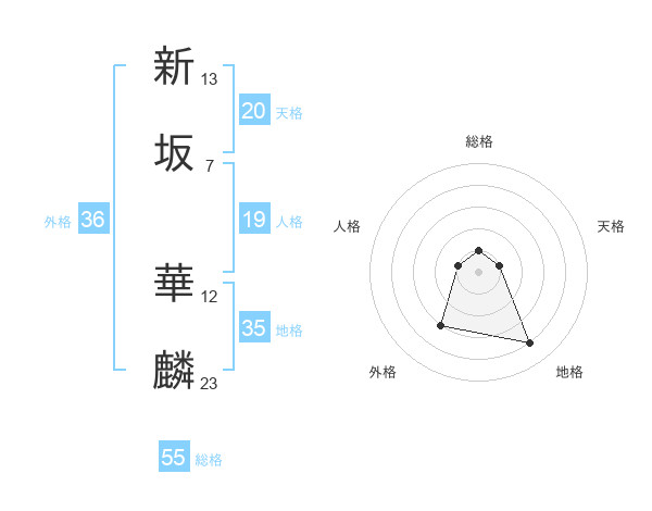 新坂 華麟さんの総格は55画の1点!