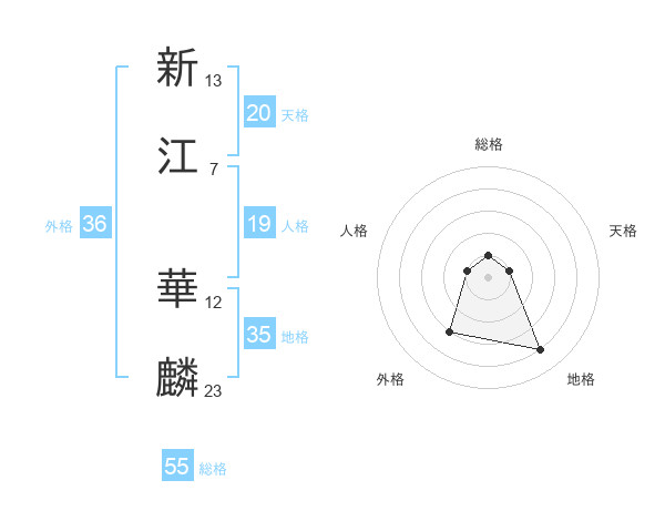新江 華麟さんの外格は36画の3点!