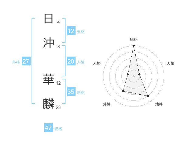 日沖 華麟さんの総格は47画の5点!