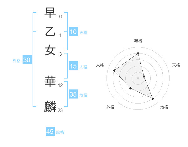 早乙女 華麟さんの総格は45画の4点!