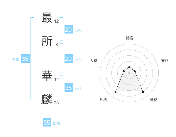 最所 華麟さんの総格は55画の1点!