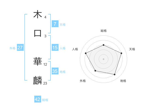木口 華麟さんの総格は42画の3点!