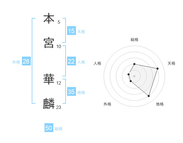 本宮 華麟さんの総格は50画の2点!