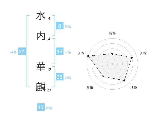 水内 華麟さんの総格は43画の2点!