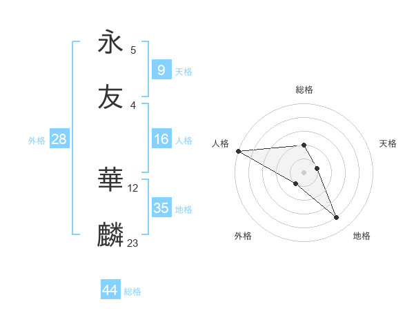 永友 華麟さんの総格は44画の2点!
