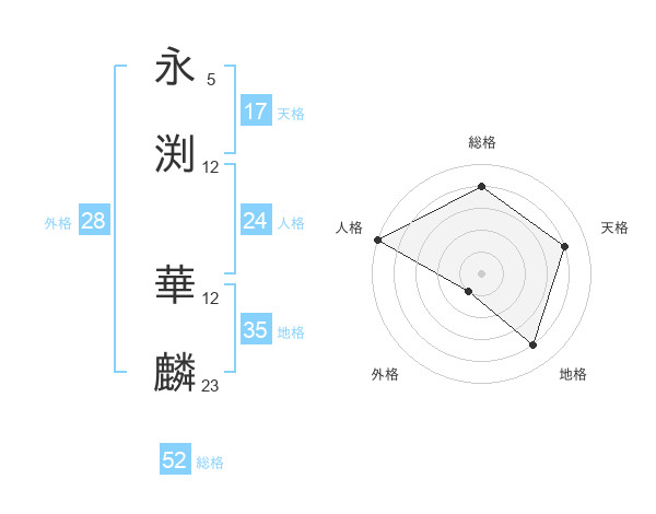永渕 華麟さんの総格は52画の4点!