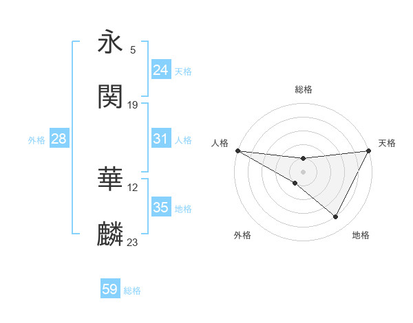 永関 華麟さんの天格は24画の5点!
