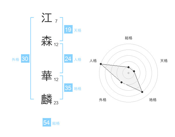江森 華麟さんの総格は54画の1点!