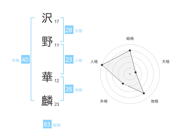 沢野 華麟さんの総格は63画の4点!