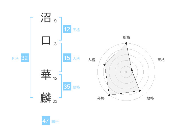 沼口 華麟さんの総格は47画の5点!