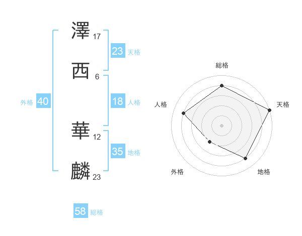 澤西 華麟さんの天格は23画の5点!