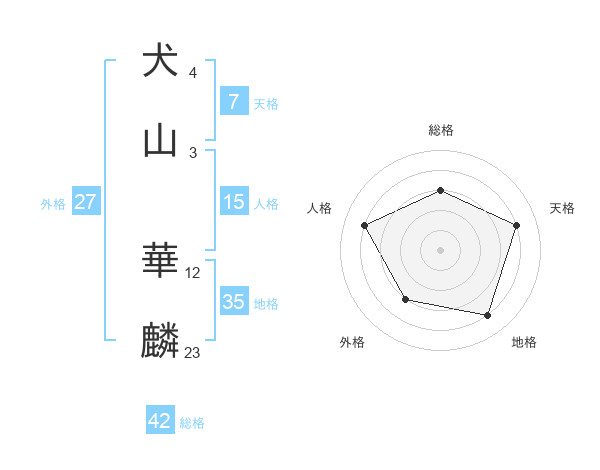 犬山 華麟さんを姓名の画数から五運を鑑定