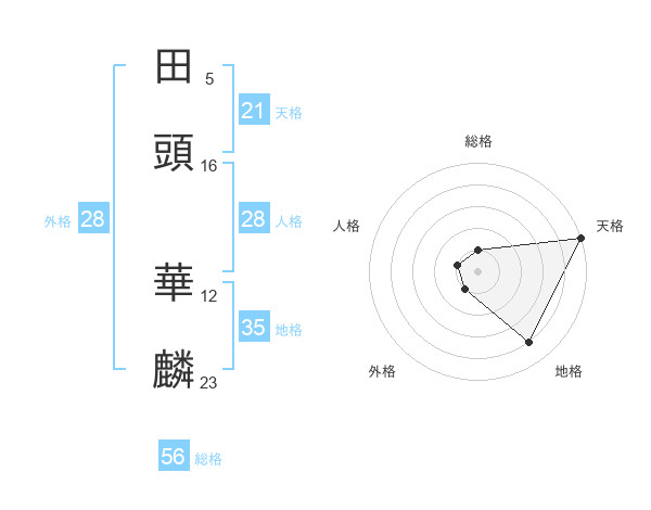 田頭 華麟さんの天格は21画の5点!