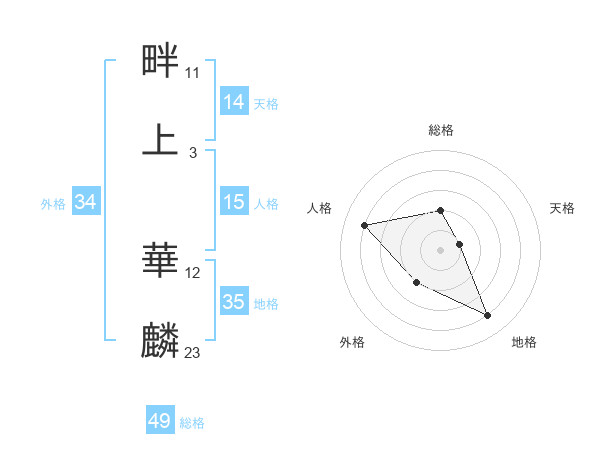 畔上 華麟さんを姓名の画数から五運を鑑定