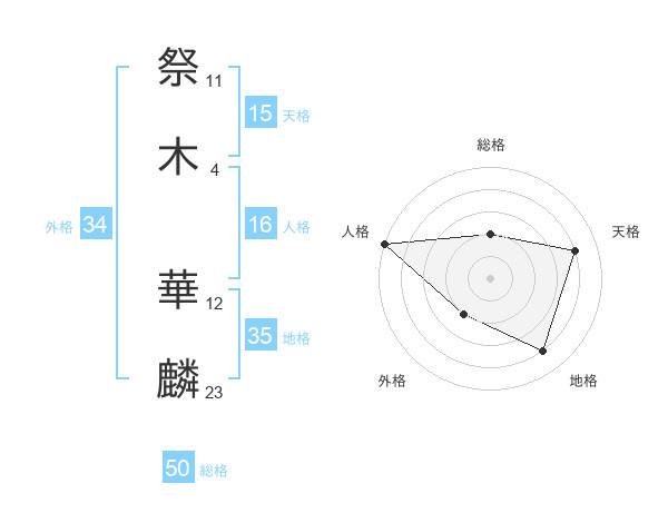 祭木 華麟さんの総格は50画の2点!