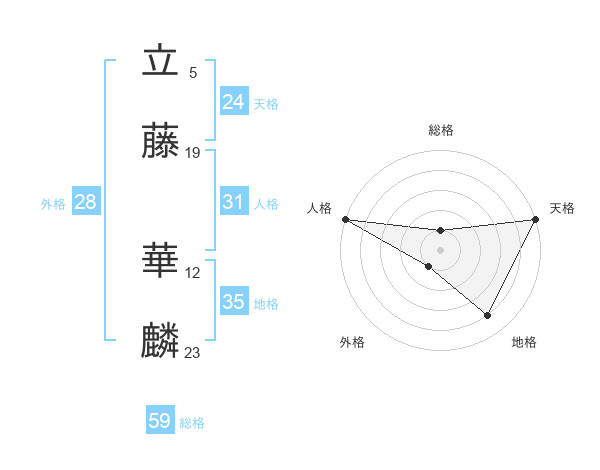 立藤 華麟さんの天格は24画の5点!