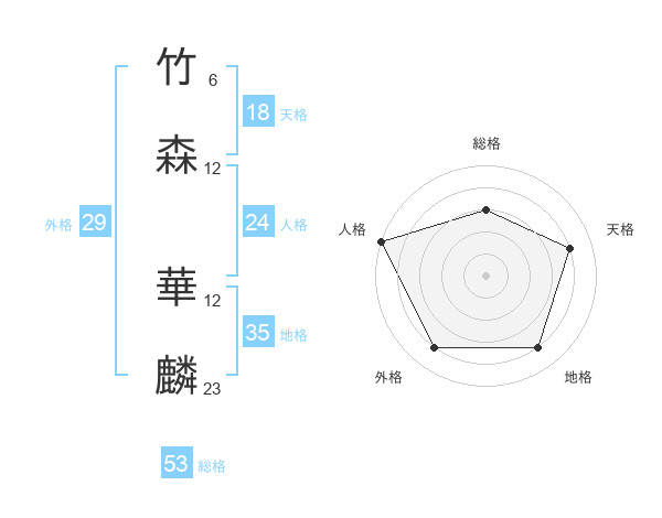 竹森 華麟さんの総格は53画の3点!