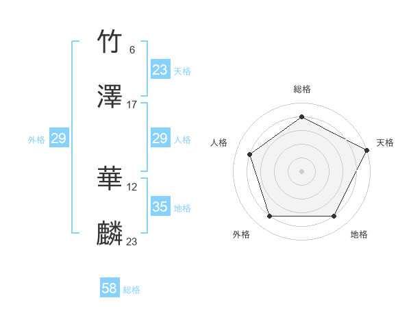 竹澤 華麟さんの総格は58画の4点!