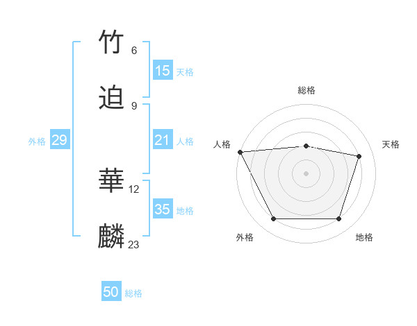 竹迫 華麟さんの天格は15画の4点!