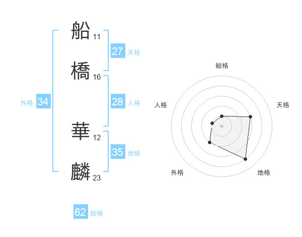船橋 華麟さんを姓名の画数から五運を鑑定