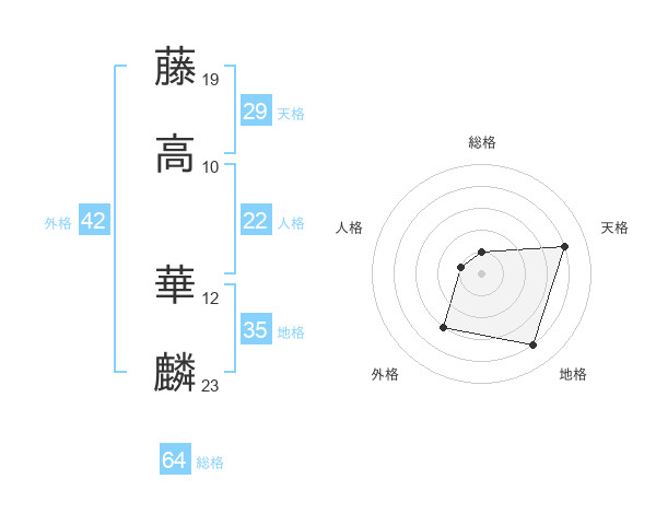 藤高 華麟さんの天格は29画の4点!