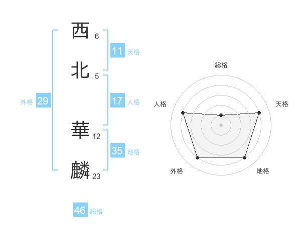 西北 華麟さんの総格は46画の1点!