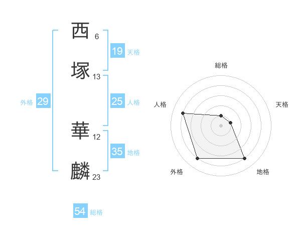 西塚 華麟さんの外格は29画の4点!
